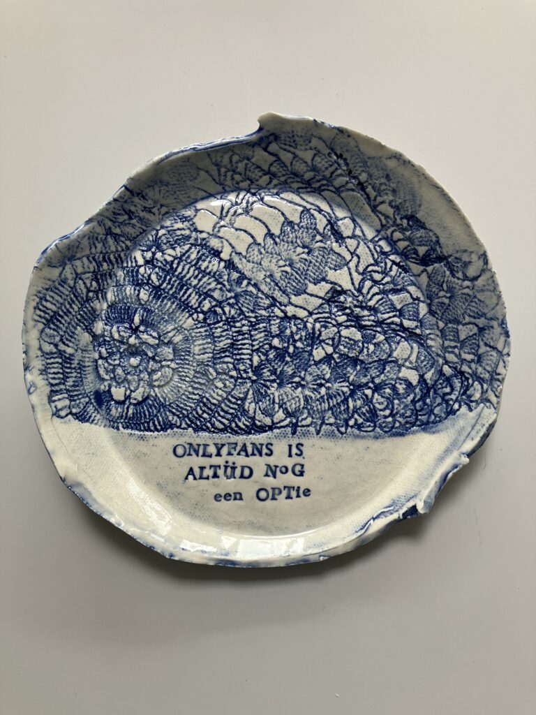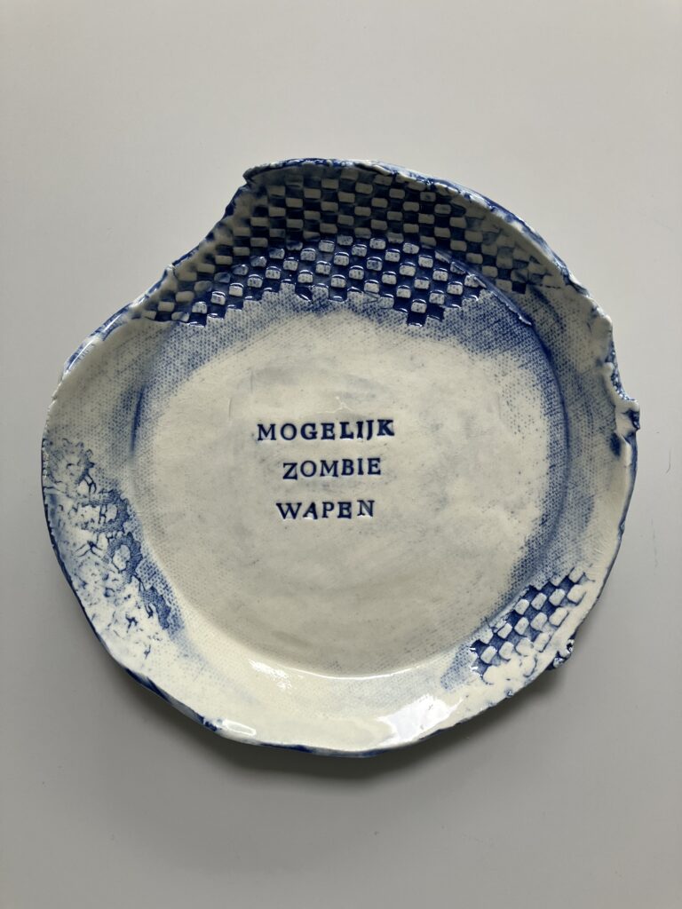 Steengoed, engobe, onderglazuur en glazuur, voor aan de muur of om van te eten, ca.15 cm — 32,50 euro (excl ophangsysteem)